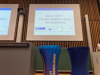 Im Rahmen seiner Ausbildung zum Kaufmann für Büromanagement ist Niklas Remke das beste Beispiel für eine gelungene Nachwuchsförderung. "Uni on Top" ist ein Modell der Universität Duisburg sowie der angesiedelten Berufsschulen, um Auszubildende während der Ausbildung anhand eines Schnupperstudiums an das Studium heranzuführen.